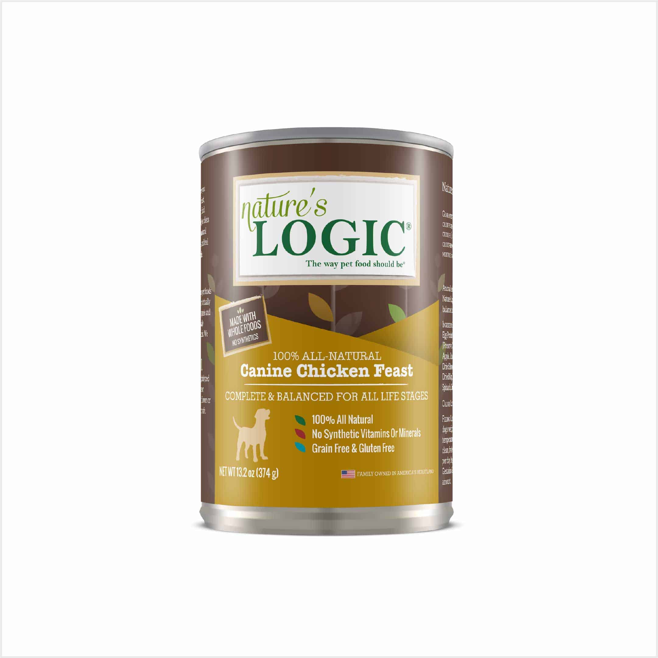 Highly palatable and nutrient dense muscle meat and organ meat based can foods with concentrates of select fruits and vegetables and containing no wheat, corn, rice, soy, potato or chemically synthesized vitamins, minerals, or trace nutrients. Each can diet contains a unique source of highly digestible natural eggshell calcium and animal plasma containing high levels of natural vitamins, minerals, and albumin and globulin proteins.