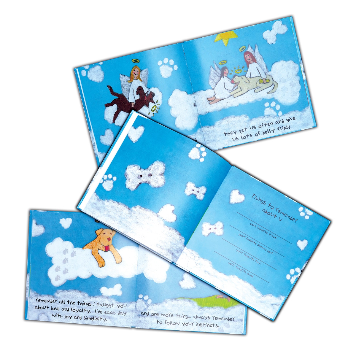 The opening pages include a personalization section that allows you to fill in the special memories of your pet. The remainder of the book includes 14 artfully illustrated pictures and touching captions to help those, both young and old, coping with the loss of their beloved family member. It is the story of the dog’s journey in heaven and describes a wonderful place to be.