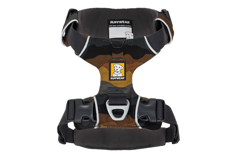 The Front Range Harness is a padded everyday dog harness that is easy to put on and comfortable for dogs to wear. A key piece of gear for canines embarking on a life of adventure with their humans, the harness features two leash attachment options: an aluminum V-ring centered on the dog's back for everyday walks, and reinforced front clip webbing at the dog's chest to redirect dogs that pull on leash. The ID pocket keeps dog tags quiet and easily accessible, and the reflective trim and light loop for The Beacon™ boost visibility in low-light conditions.