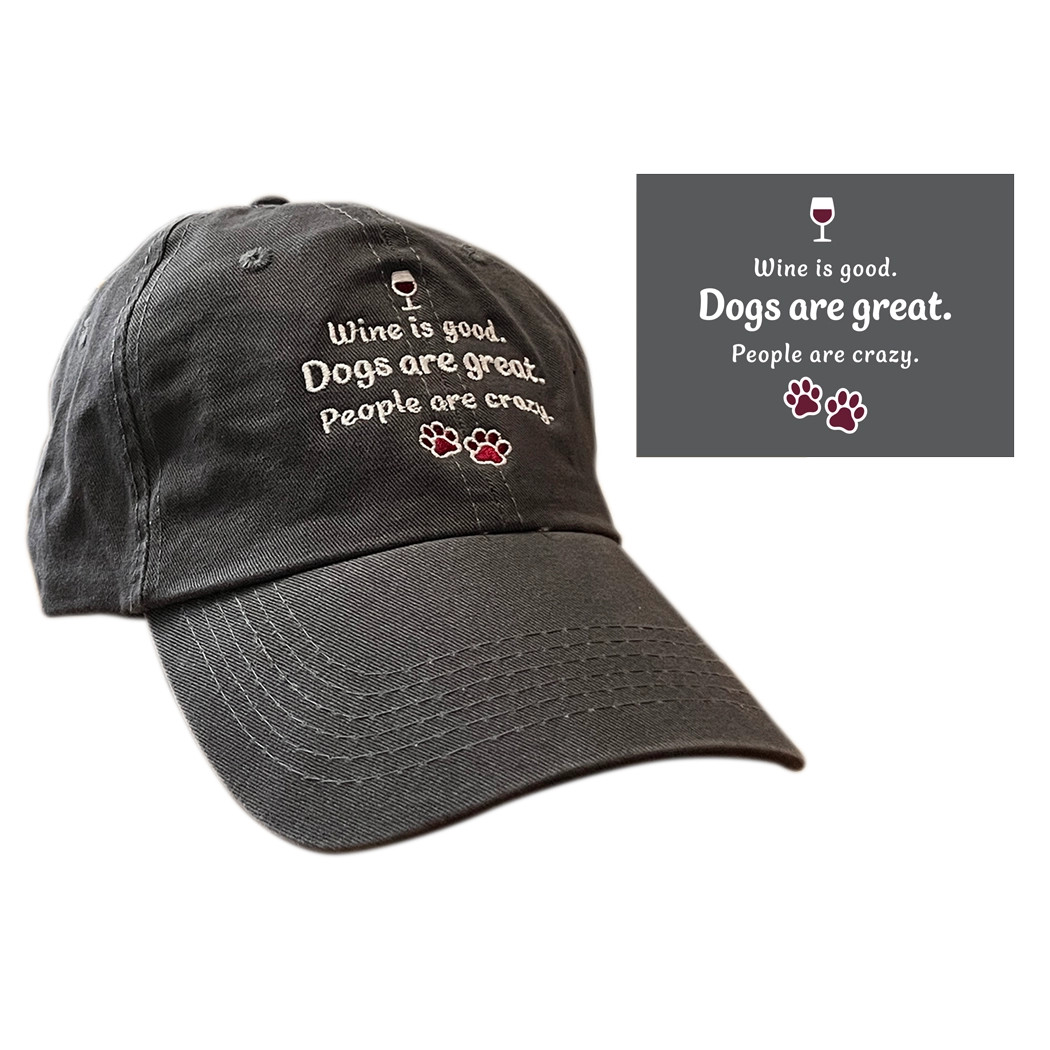 Wine is good. Dogs are great. Baseball Cap